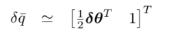 보통 error는 값에서 추정값을 뺀 $\widetilde{x}=x-\hat{x}$ 형태 이지만 error quaternion은 조금 다르게 정의 한다.