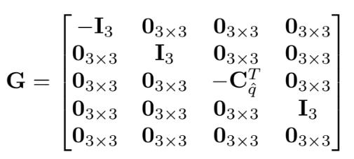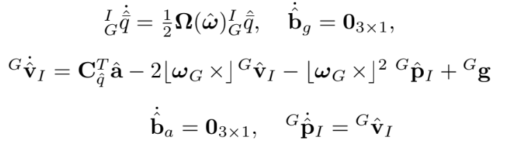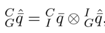 $\hat{\boldsymbol{\omega}}=\boldsymbol{\omega}{m}-\hat{\mathbf{b}}{g}-\mathbf{C}{\hat{q}} \boldsymbol{\omega}{G}$