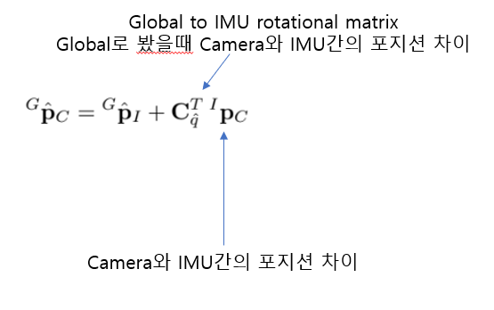 ${ }^{G} \mathbf{p}{I}, { }^{G} \mathbf{v}{I}$는 각각 IMU의 global postion과 velocity 이다.