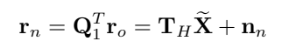 그래서 행렬 $\mathbf{H}^{(j)}_{f}$의 left nullspace에 $\mathbf{r}^{(j)}$를 projection 시켜서 새롭게 정의하고, 특히나 $\mathbf{A}$의 column이 $\mathbf{H}_f$의 left nullspace의 basis를 갖는 unitary 행렬이라 했을 때 다음과 같다.