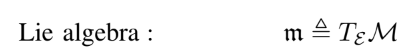 특정 위치 $\mathcal{X}$에서가 아닌 identity $\mathcal{E}$에서의 tangent space를 $\mathcal{M}$위의 Lie algebra라고 한다.