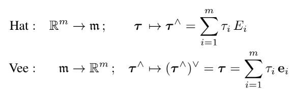 $\boldsymbol{\tau}$는 $\mathbb{R}^m$상의 벡터이다. ($\mathbf{e}_{i}^{\wedge}=E_{i})$