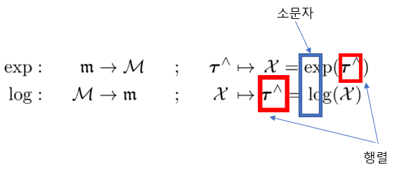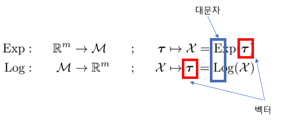 그런데 $\mathbf{v}^{\wedge} t$는 벡터 $\mathbf{v}$에서 파생된 행렬인데 $\exp \left(\mathbf{v}^{\wedge} t\right)$은 지수로써 계산이 불가능해진다.