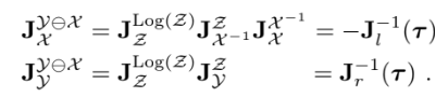 그리고 $\mathcal{Z}=\mathcal{X}^{-1} \circ \mathcal{Y}$ 와 $\boldsymbol{\tau}=\mathcal{Y} \ominus \mathcal{X}=\log (\mathcal{Z})$가 주어졌을 때