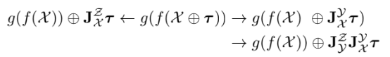 간단한 증명방법은 오른쪽 Jacobian 일 때 작은 $\boldsymbol{\tau}$에 대해 다음이 성립한다고 했었다.